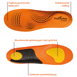 FootActive Football er udviklet af idræts- og fodspecialister til at rette op på fødderne og korrigere overpronation. Indlægssålen giver både støtte og støddæmpning og øger dermed spillerens komfort væsentligt. Det smalle, tynde design skaber den perfekte pasfor i skoene og mindsker krampe i fødderne.